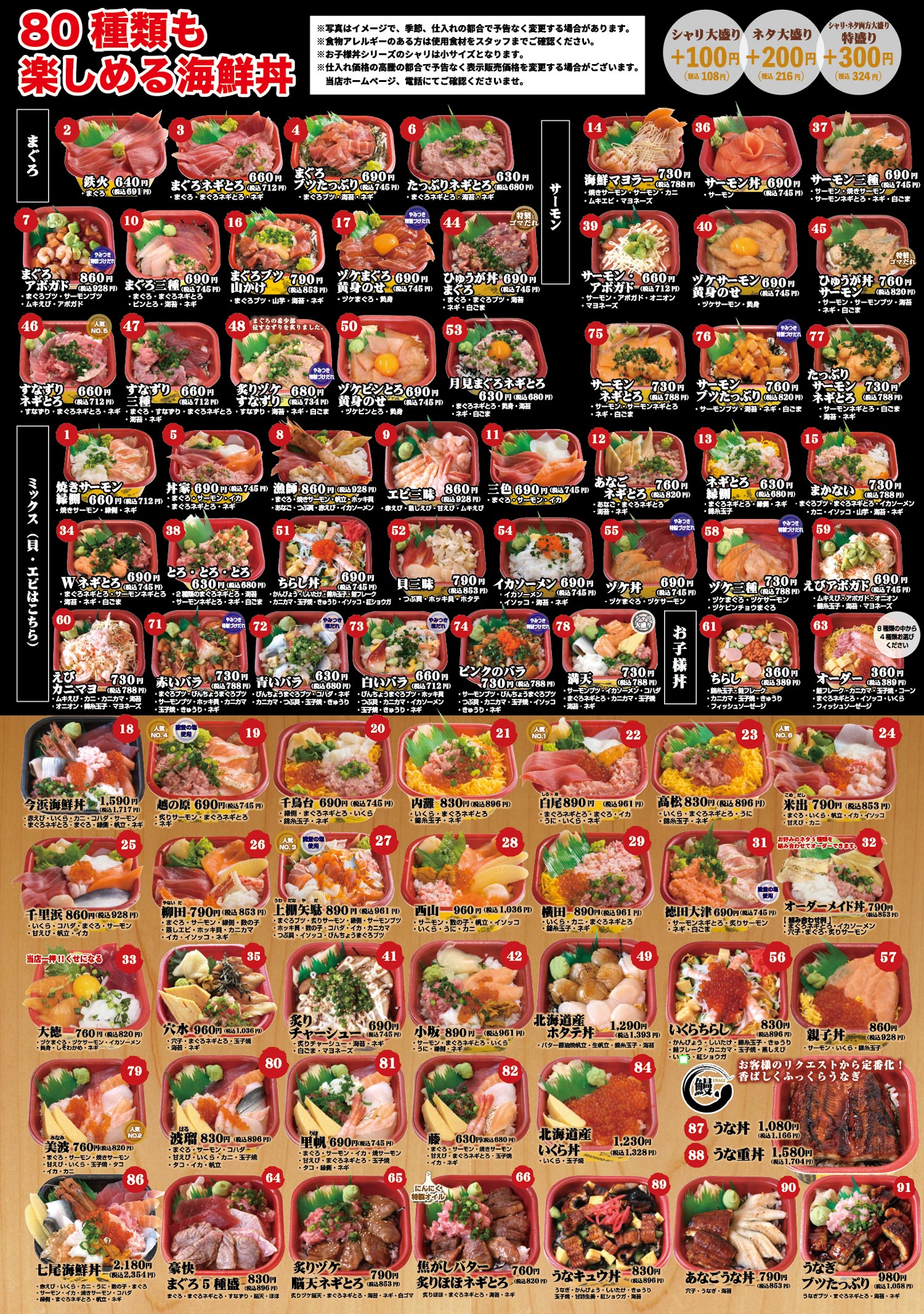 海鮮丼メニュー
